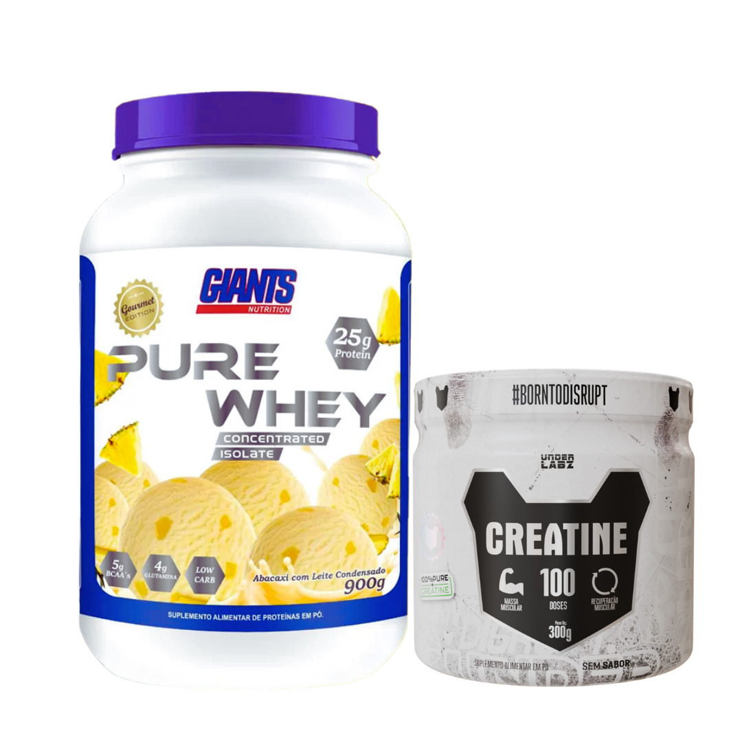 Um Pure Whey 900g Giants Nutrition: A proteína ideal para quem busca ganho de massa muscular de qualidade. Composto por whey protein concentrado e isolado, proporciona rápida absorção e excelente perfil de aminoácidos.